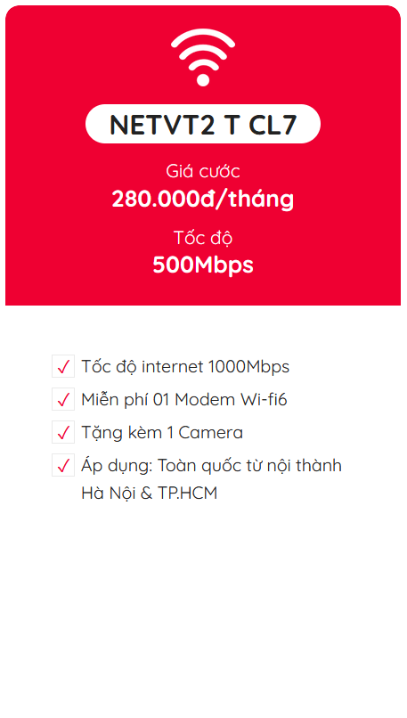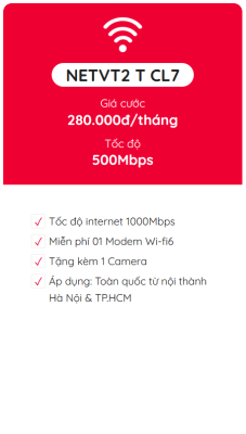 Gói Internet Wifi + Camera Viettel mang đến giải pháp an ninh toàn diện cho gia đình và cửa hàng. Khách hàng vừa được dùng mạng internet ổn định, vừa được trang bị hệ thống camera chất lượng cao để giám sát nhà cửa, tài sản, con cái, người lớn tuổi hoặc cửa hàng 24/7. Việc lắp internet Viettel kèm camera giúp thiết bị hoạt động ổn định, xem từ xa rõ nét, truyền tải hình ảnh mượt mà không giật lag. Viettel hỗ trợ lắp đặt trọn gói, bảo hành chính hãng và đồng bộ giữa đường truyền – thiết bị, đảm bảo an tâm tuyệt đối. Đây là lựa chọn lý tưởng cho những khách hàng tại Hòa Lạc tìm kiếm giải pháp Internet + An ninh trong cùng một dịch vụ.
