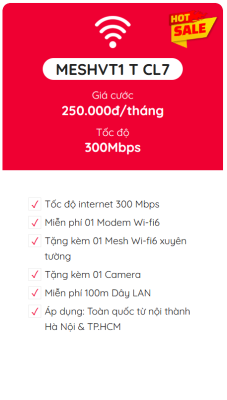 Danh sách các gói cước Combo: Internet Wifi + Camera