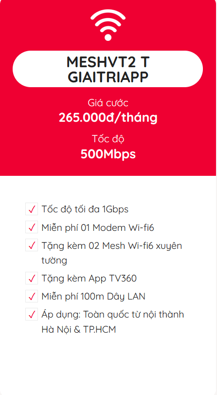 Danh sách các gói cước Combo: Internet Wifi + APP TV360