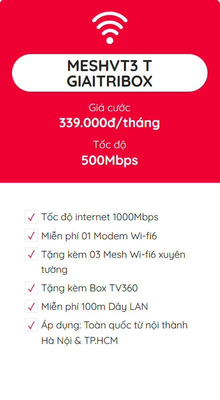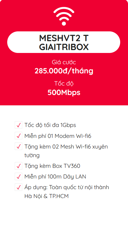 Danh sách các gói cước Combo: Internet Wifi + Box TV360