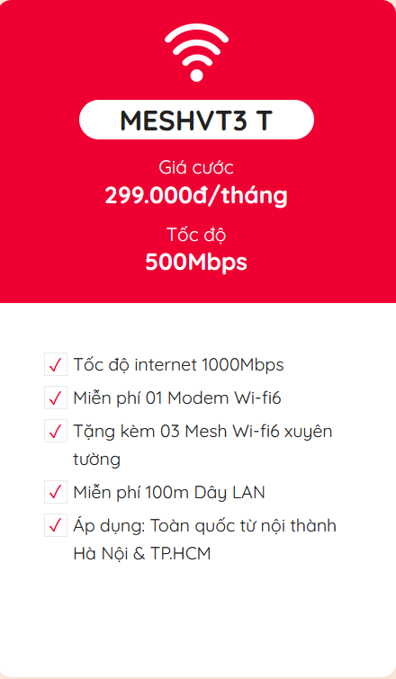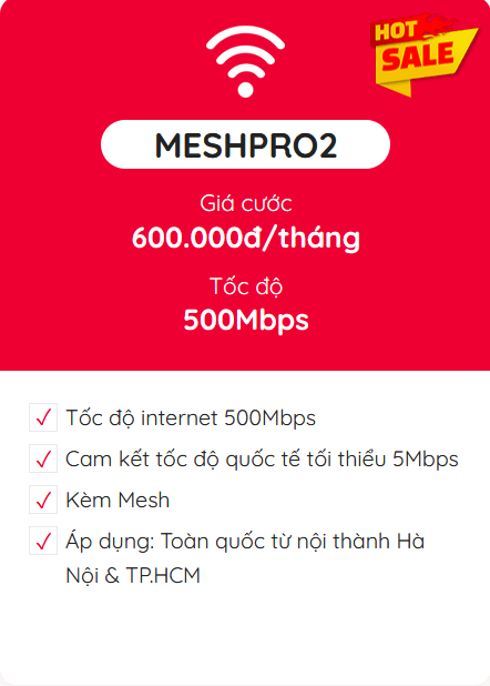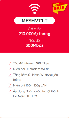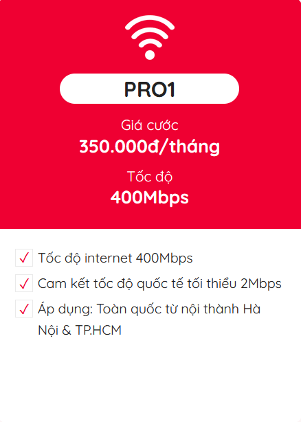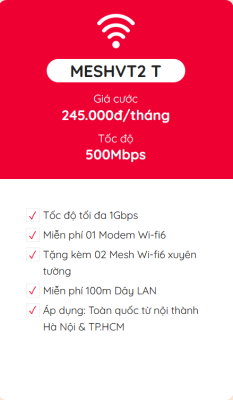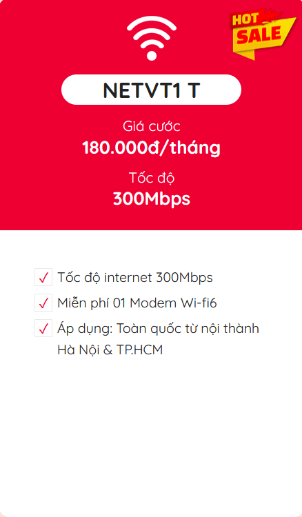 Danh sách các gói cước Internet Wifi đơn lẻ