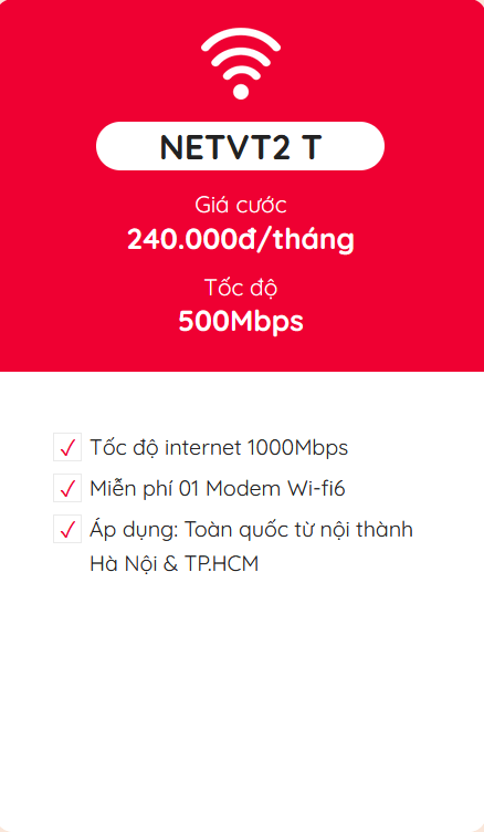 Gói Internet Wifi doanh nghiệp Viettel được thiết kế dành riêng cho công ty, cửa hàng, văn phòng và các mô hình kinh doanh cần mạng mạnh, ổn định và chịu tải cao. Viettel cung cấp băng thông lớn, hỗ trợ IP tĩnh, truyền tải quốc tế tốt, tối ưu cho làm việc online, camera giám sát, POS bán hàng, phần mềm quản lý và hệ thống máy chủ. Khi doanh nghiệp lắp internet Viettel, Viettel sẽ hỗ trợ thiết bị chuyên dụng, đường truyền ưu tiên và chăm sóc kỹ thuật nhanh chóng. Gói cước này đảm bảo hoạt động kinh doanh không bị gián đoạn, phù hợp với doanh nghiệp tại khu vực Hòa Lạc đang phát triển mạnh.